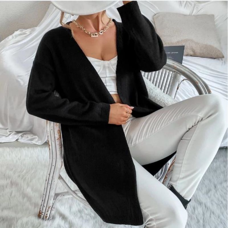 product名:秋の女性のセーターコートルーズブラック毎日の長いニットカーディガン